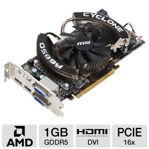 MSI Radeon HD 6850 1 GB DDR5 2DVI/ HDMI/DisplayPort PCI-Express Video Card, R6850 CYCLONE PE/OC on amazon